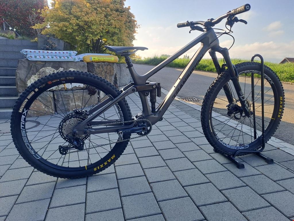- Ich verkaufe mein 29 Zoll Vollcarbon Trail- und Enduro Fully von Transition Bikes Transition Sentinel von 2022 Highlights: 29" Vollcarbon Rahmen, Rockshock Lyrik Ultimate Federgabel und Super Deluxe Ultimate Dämpfer, neue Shimano XT 12-fach Schaltgruppe, Sram Code RSC 4 Kolbenbremsen, 29" Mavic Crossmax XL Laufräder Das Bike befindet sich in einem sehr guten Zustand und kommt frisch ab Service inkl. Gabel und Dämpferservice, alles funktioniert einwandfrei. Rahmengrösse L, ideal für eine Körpergrösse von 173 cm bis 186 cm Das Sentinel ist der Allrounder aus dem Sortiment von Transition Bikes. Es schafft den Spagat zwischen Uphill Effizienz und Downhill Performance. Die Kombination aus 160 Millimeter Federweg an der Front und 150 Millimeter am Heck sorgt in Verbindung mit der progressiven Kinematik für ein schluckfreudiges, traktionsstarkes Fahrwerk. Es hält das Bike auch bei hoher Geschwindigkeit und harten Schlägen auf dem Trail gut kontrollierbar. Das Bike im Detail: Vollcarbon Rahmen (Hauptrahmen und Hinterbau aus Carbon) mit Cascade Components Linkage Rockshox Lyrik Ultimate Federgabel mit 160 mm Federweg Rockshox Super Deluxe Ultimate Dämpfer mit 150 mm Federweg neue Shimano XT 12-fach Antriebsgruppe mit SLX Kurbel und 10-51 XT Kassette, fabrikneu und ungefahren ist das XT-Schaltwerk, der XT-Schalthebel und die XT-Kette, 10 mal gefahren ist das Kettenblatt, die XT-Kassette und die SLX Kurbel. volle Bremspower mit Sram Code RSC 4 Kolben Bremsen mit 203 mm und 180 mm Bremsscheiben 29 Zoll Mavic Crossmax XL Laufräder mit 30 mm Innenbreite Canyon G5 Carbon Lenker 780 mm breit und 30 mm Rise absenkbare RockShock Reverb Sattelstütze, mit 150 mm Hub Syncros Carbon Sattel Maxxis Pneus, tubeless verbaut XT-Klick Pedale