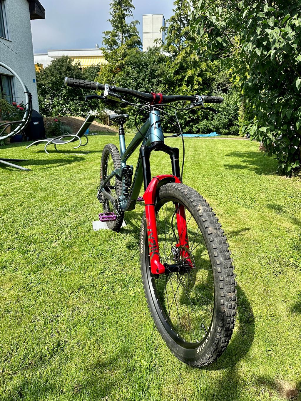 - Gut gepflegtes Bike mit vielen hochwertigen Teiln. Habe mir das Fahrrad als zweit Bike für Park& Singeltrails zusammengestellt. Aber sehr selten gefahren und daher habe ich keine Verwendung mehr dafür. Gabel& Dämpfer ausgetauscht(Original vorhanden) Trp bremsen Carbon Lenker mit Raceface Vorbau Chromag Pedalen