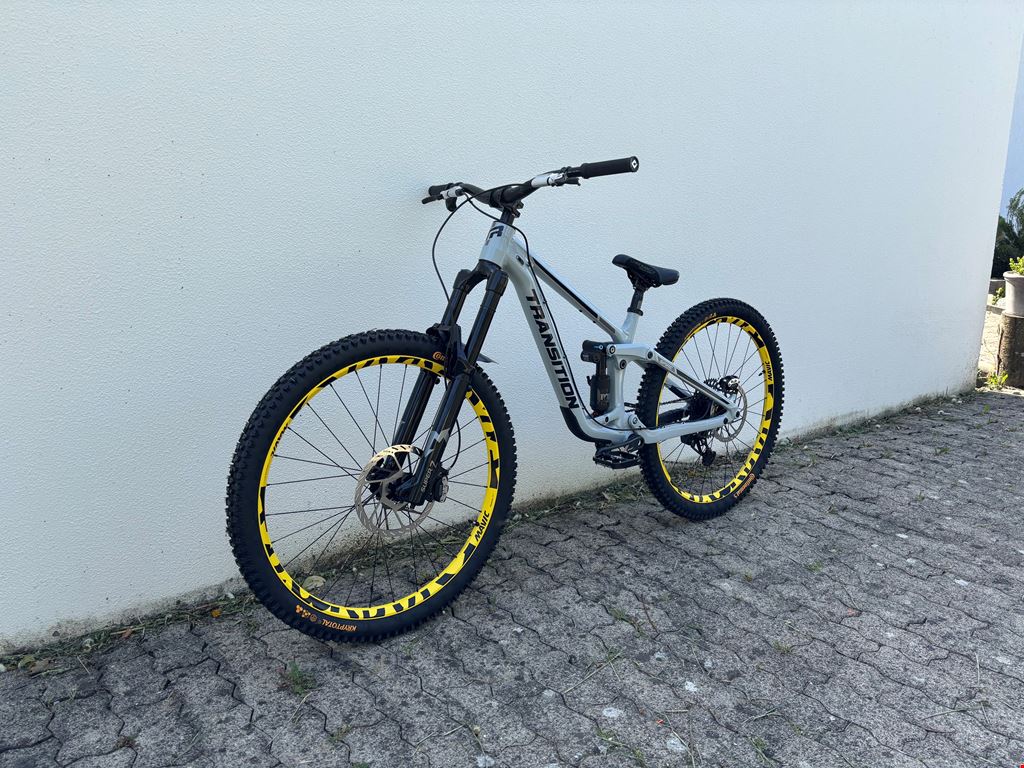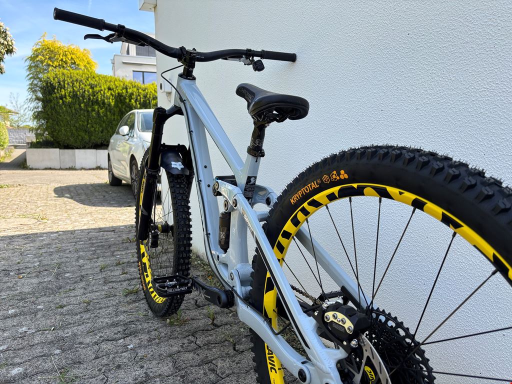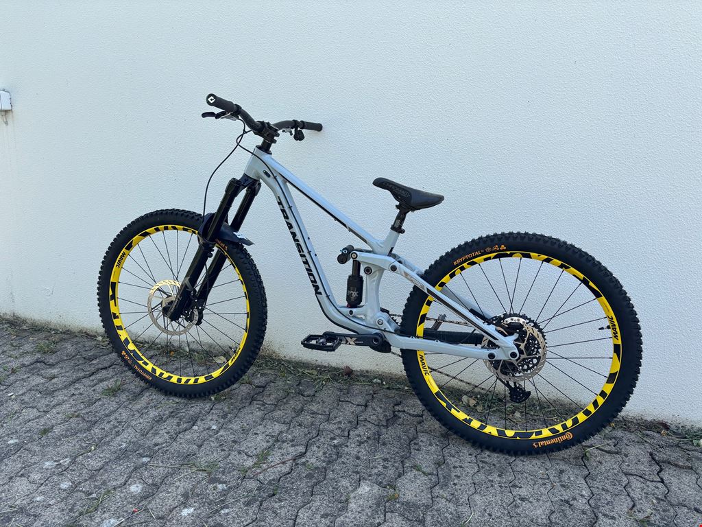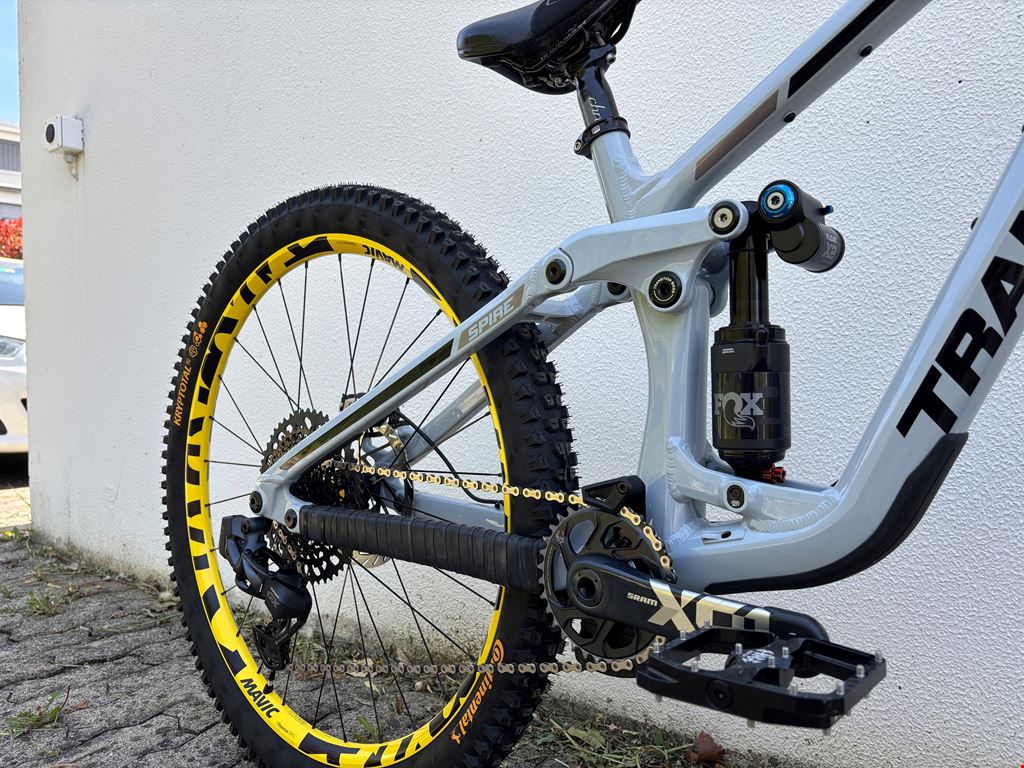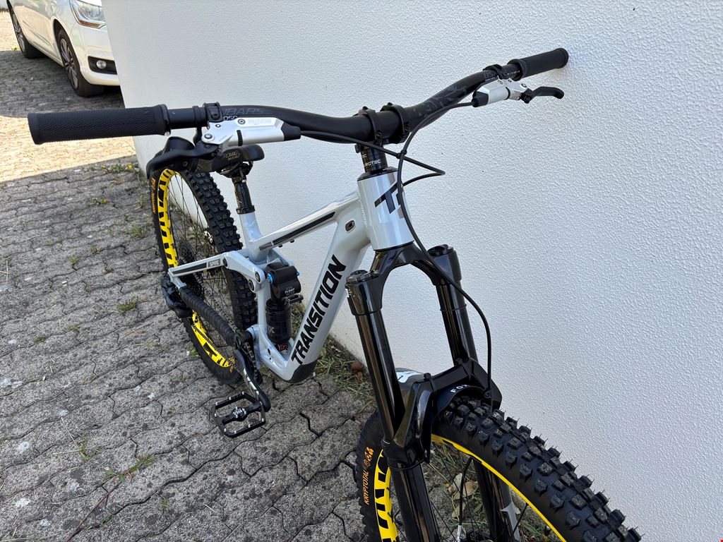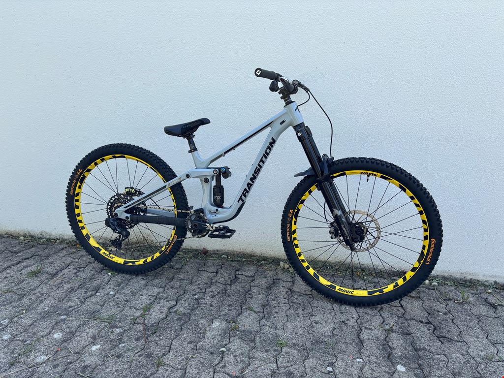 - -Transition Spire Alloy 2025 29" Frame Grösse Medium -Marzocchi Super Z 29" 180mm 44mm 58HT GRIP X - Shiny Black -2026 FOX Float X2 Performance Elite Trunnion | 2-Pos | 205mm x 65mm -Sram XG-1275 GX Eagle Kassette mit Sram GX-Kette -Sram Maven Ultimate Stealth Bremsen-Set -Sram Bremsscheiben (vorne 220mm, hinten 200mm) -SRAM X01 Eagle Boost DUB DM 12-fach Carbon Kurbelgarnitur -Burgtec Penthouse Flat MK5 B-Rage Edition Plattformpedale -Burgtec Vorbau Spacer Kit -Sram GX Eagle AXS Upgrade Kit -AXS Pod Schalthebel -Mavic Deemax DH YLW 29" Boost Laufradsatz SRAM XD / Boost 12x148mm -RockShox Reverb AXS B1 31,6mm Vario-Sattelstütze 200mm -Continental Kryptotal 29x2.4 Downhill vorne / hinten -ODI Griffe Ruffian -Fox camo Mudguard -Chromag Lenker 35mm rise -SDG Bel Air Sattel -Chromag Sattel und Sattelstütze (optional) Fox Float 38 170mm (auch fabrikneu) kann ausgetauscht werden mit der SuperZ 180mm wenn gewünscht. Das Bike ist fabrikneu und wurde nur einmal im Quartier Probegefahren. Custom-Aufbau fertiggestellt Ende März 2026. Den Rahmen habe ich im November 2025 angeschafft, alle Anbauteile stammen aus dem Frühjahr 2026. Probefahrt möglich.
