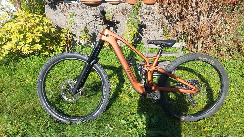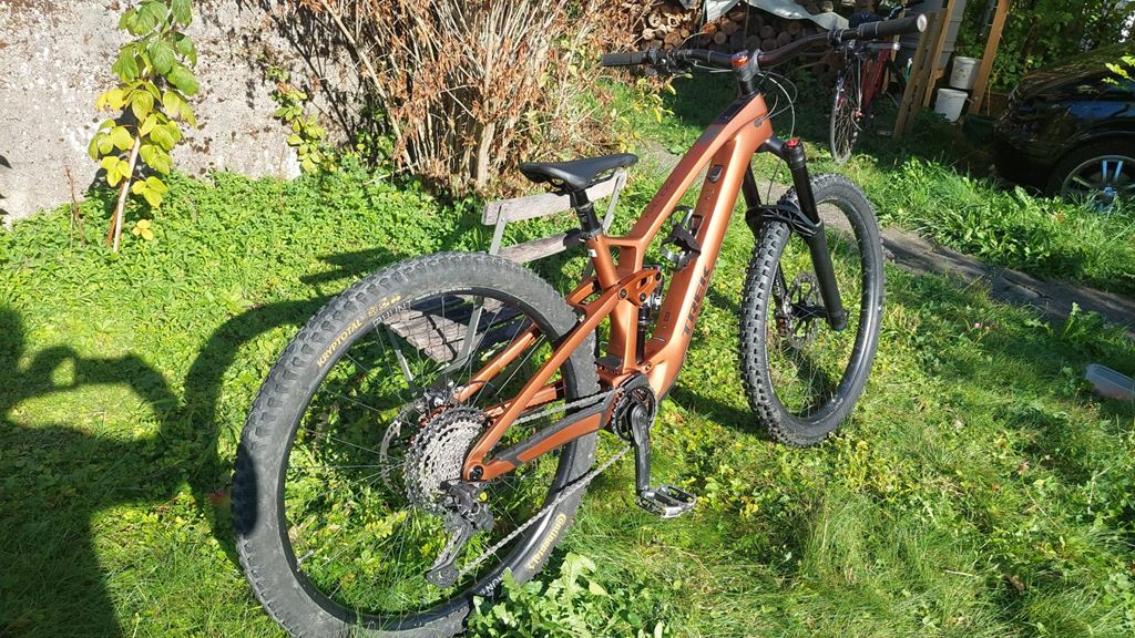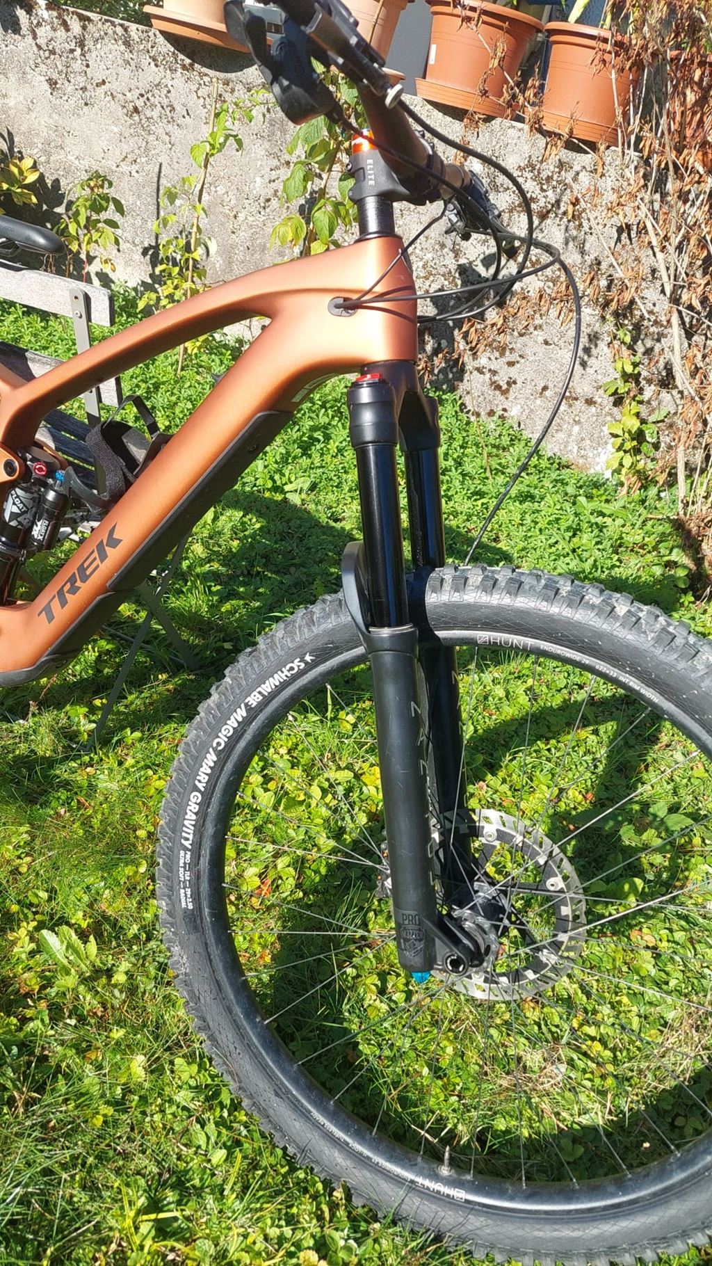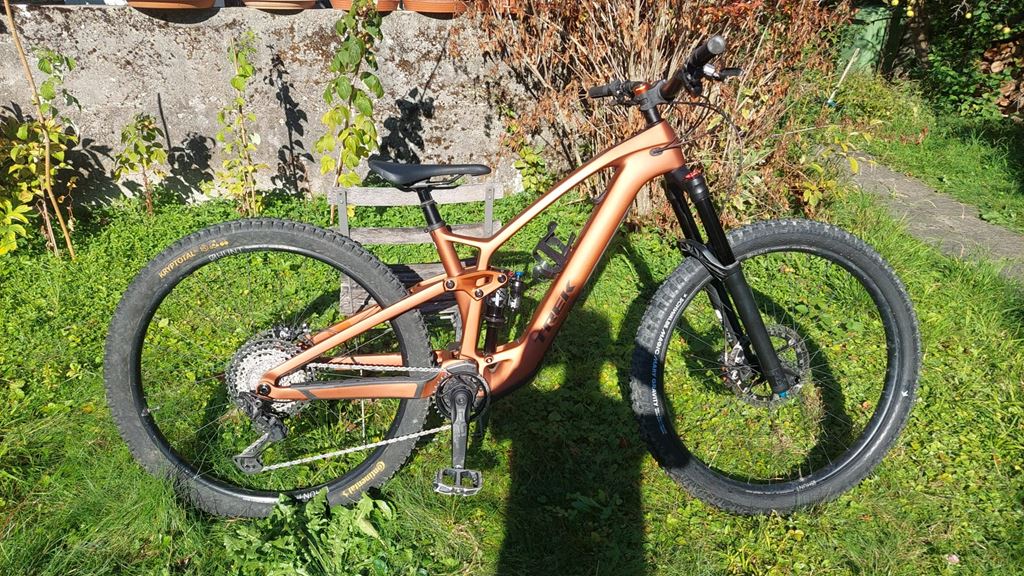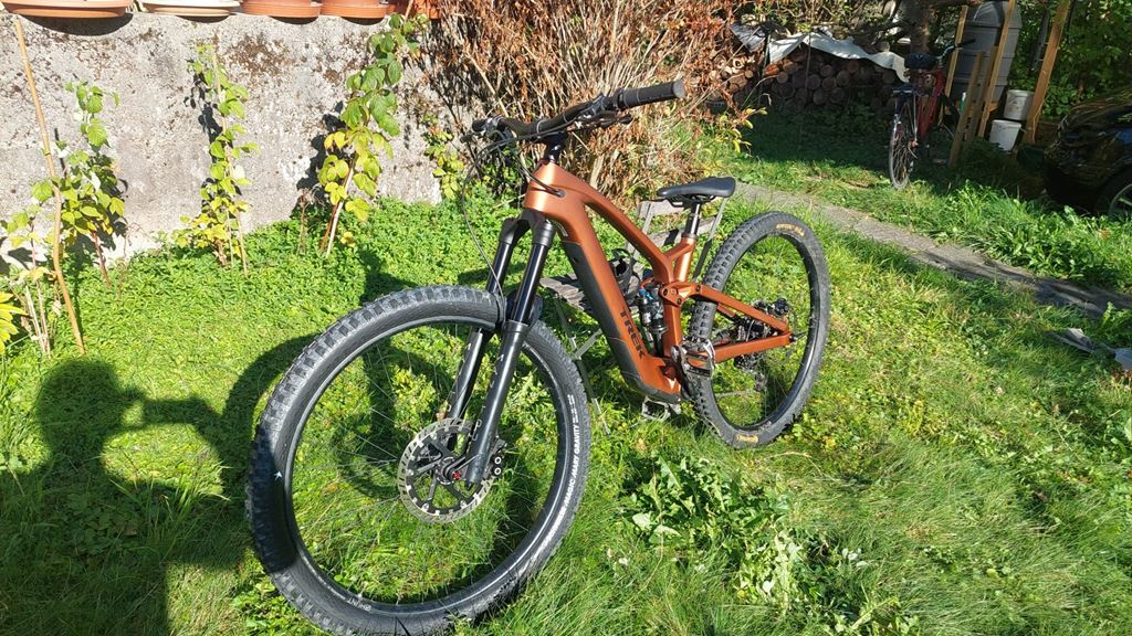 - Tolles und sehr gut erhaltenes Light E-MTB. Abweichen von der Orginalaustattung ist eine Manitou Mezzer, Magura MT5, one up 180mm Dropper und ein PNW Components Lenker verbaut. Der gennante Preis wäre mit einer orginal 150mm Fox 36 gabel, orginal bremsen und orginal Lenker. Wenn der wunsch an diesen Teilen besteht wäre dies sicher verhandelbar. Hier die Orginalbeschreibung: Rahmen: OCLV Mountain Carbon, herausnehmbarer Akku, interne Zugführung, Aluminiumumlenkhebel, 34,9 mm Sitzrohrdurchmesser, Aufnahme für obere Kettenführung, 55 mm Kettenlinie, Mino Link, ABP, Boost148, UDH, 140 mm Federweg H, 150 V Rahmengröße: L Rahmenmaterial: Carbon Gangschaltung: Shimano XT M8100, langer Käfig Anzahl Gänge: 12 Schalthebel: Shimano SLX M7100, 12fach Hinterradbremse: SRAM CenterLine, 6-Loch-Scheibenaufnahme, abgerundete Kante, 200 mm Vorderradbremse: SRAM CenterLine, 6-Loch-Scheibenaufnahme, abgerundete Kante, 200 mm Gabel: FOX Rhythm 36, Float EVOL-Luftfeder, GRIP-Dämpfung, konischer Gabelschaft, 44 mm Vorbiegung, Boost110, 15 mm Kabolt-Achse, 150 mm Federweg Schaltwerk hinten: Shimano XT M8100, langer Käfig Kurbelsatz: e*thirteen e*spec Plus, 165 mm Kurbelarmlänge Kassette: Shimano SLX M7100, 10-51 Zähne, 12-fach Kette: Shimano SLX M7100, 12fach Lenker: Bontrager Line, Aluminium, 35 mm, 27,5 mm Rise, 780 mm Breite Lenkervorbau: Bontrager Elite, 35 mm, 0 Grad, 45 mm Länge Lenkerband Griffe: Bontrager XR Trail Elite, Nylonklemme Sattel: Bontrager Arvada, Austenitstreben, 138 mm Breite Sattelstütze: (Nicht original, aber besser) One up 180mm Hub, interne Zugführung, 34,9 mm Räder: Bontrager Line Comp 30, Tubeless Ready, 6-Loch-Scheibenaufnahme, Boost110, 15 mm Steckachse, 29" Bontrager Line Comp 30, Tubeless Ready, Rapid Drive 108, 6-Loch-Scheibenaufnahme, Boost148, 12 mm Steckachse, 29" Akku: TQ 360 Wh Motor: TQ-HPR50, 50 Nm, 250 W max. Nenndauerleistung, 300 W Maximalleistung Display: TQ LED-Display mit Bluetooth- & ANT+-Konnektivität