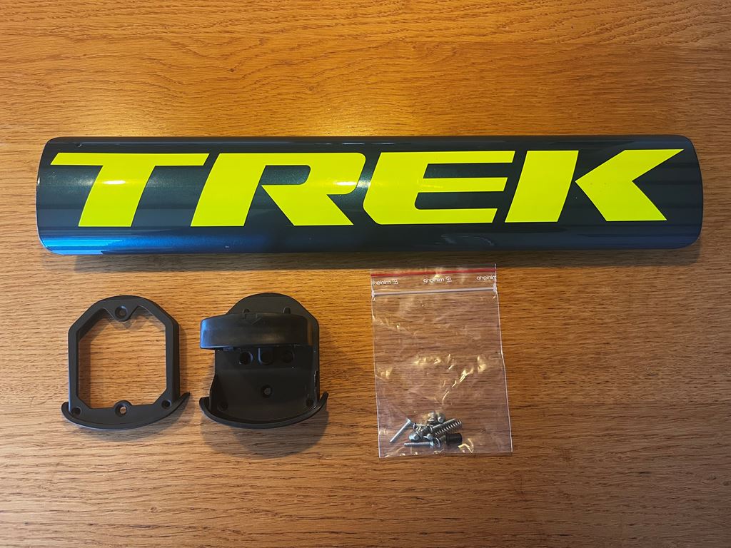 - Verkaufe ein Akku Cover für Trek eBikes, sehr guter Zustand, lediglich kleine Kratzer auf der Rückseite vom ein/Ausbau siehe Bild 2. Mit allen Befestigungs Teilen.