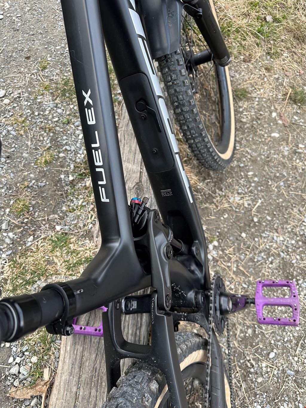 - Text: Trek Fuel EX 9.8 – top gepflegt, hochwertig ausgestattet, sofort fahrbereit Ich verkaufe mein Trek Fuel EX 9.8 in sehr gepflegtem Zustand. Das Bike wurde immer sehr gut gewartet und ist entsprechend in einem super Zustand. Es wurde stets sorgfältig behandelt, gereinigt und alle nötigen Services wurden zuverlässig durchgeführt. Zusätzliche Modifikationen - vorne eine grössere Bremsscheibe 220mm - Carbonlenker Trek in einem Stück Ein top gewartetes, hochwertiges Mountainbike in ausgezeichnetem Zustand. Mit seinem Rahmen aus OCLV Mountain Carbon und dem FOX Performance-Dämpfer mit RE:aktiv-Technologie mit Thru Shaft und 130 mm Federweg ist das Fuel EX C das ideale Trailbike