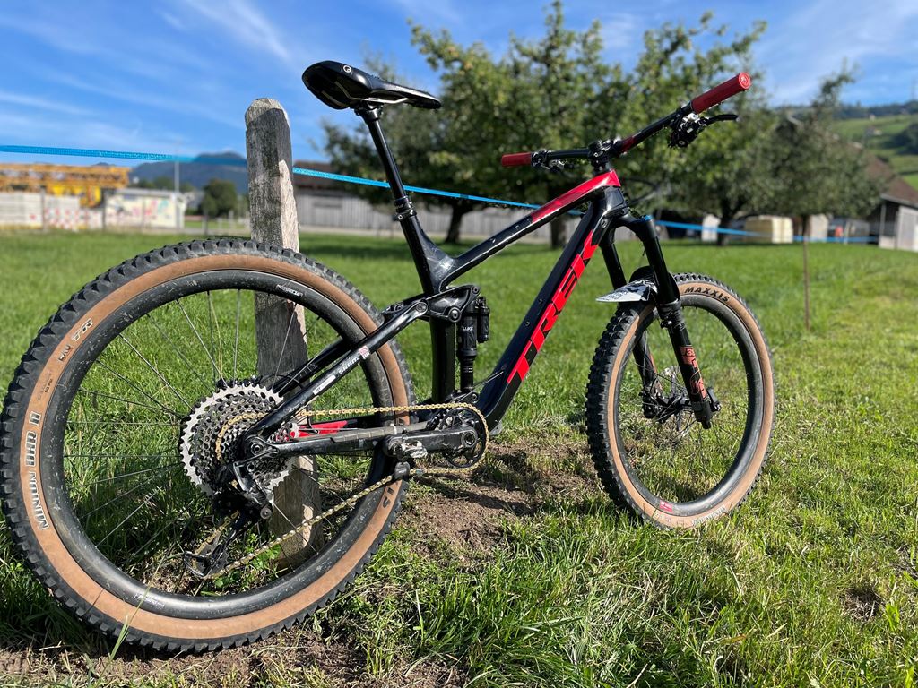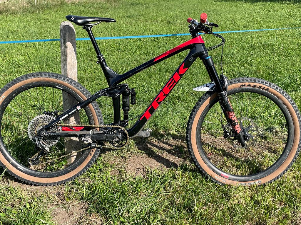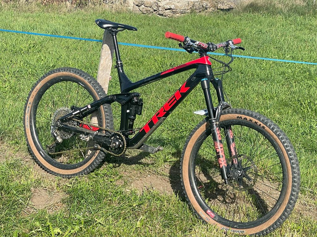 - Trek Remedy 9.9 RSL custom mit Top Komponenten individuell aufgebaut und Carbon-Laufrädern. Rahmen ist 19.5 Zoll gross, also L. Passt sehr gut für mich, bin ca 181cm. Das Bike wurde laufend mit neuen Komponenten versehen. Der Rahmen wurde von Anfang an vollständig mit Folie überzogen. Diese kann abgezogen werden um einen fast neuen Rahmenlook zu bekommen. Rahmen: Trek Remedy Carbon 2018 Gabel: Fox 36 Grip 2 160mm von 2021 (Geniales Teil! - hat bereits die Entlüftungsventile an den Standrohren) Lenker: pro Taper 780mm breit Vorbau: Syntace Sattelstütze: Race Face Sattel: Ergon SMC4-M Dämpfer: Rock Shox Super Deluxe Ultimate 2020 (gabs so nie für das Remedy, wurde extra dafür umgebaut, frisch ab service) Schaltung: SRAM X01 12 fach mit XX1 Kette in gold Kurbel: Race Face Next SL Carbon mit ovalem Kettenblatt 32Z Laufräder: 240/370 DT Swiss Naben mit Carbon Felgen, Innenbreite 31mm, DT Messerspeichen, tubeless mit Cush Core hinten Bremsen: Formula Cura Reifen: Maxxis Minion Gewicht: leicht Immer im Service, kein Wartungsstau. Services wurden mehr als regelmässig durchgeführt. Man bedenke, dass ein Gabel Service um die 150-200.- kostet.