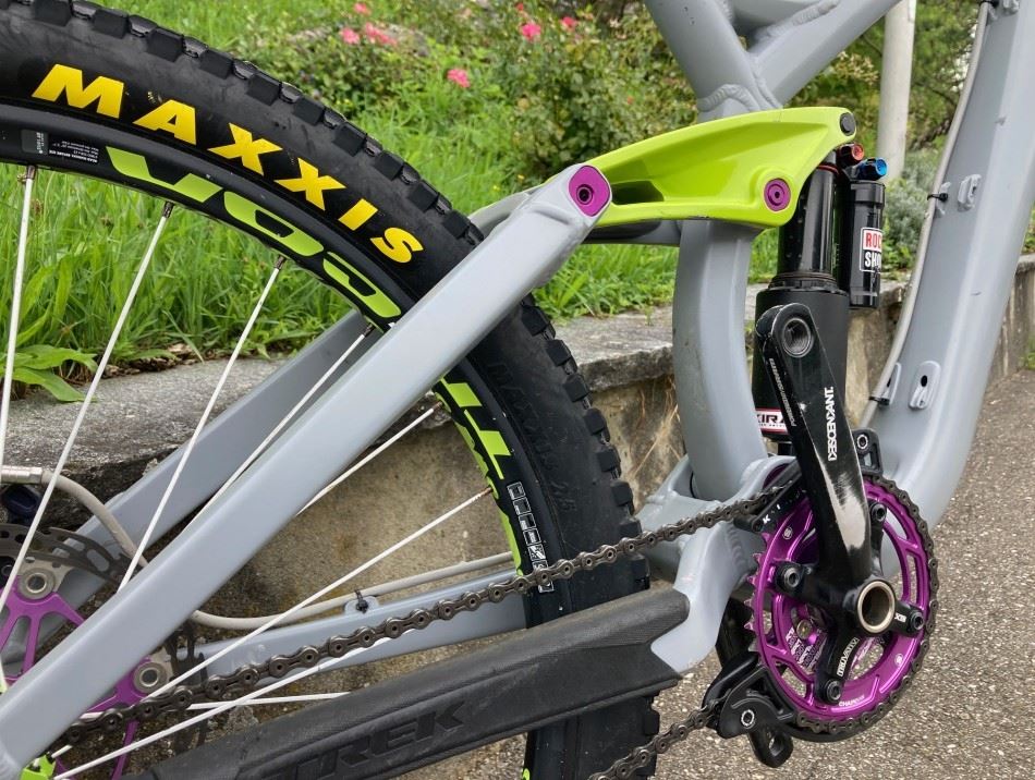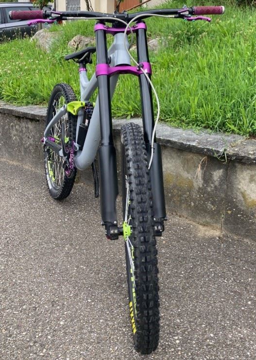 - Verkaufe hier schweren Herzens (war mein erstes DH- Bike) ein etwas spezielleres, supergeiles und sehr sprungfreudiges Trek Session inkl. 2ter Radsatz, 2ter Dämpfer Fox RC2 und div. neuwertige Ersatzreifen wegen Neuanschaffung. Federgabel: Manitou Dorado 200mm Dämpfer: RockShox Vivid Air Bremsen: Hope Tech3 V4 Felgen/ Reifen: DT Swiss mit Maxxis Pneu (tubelessfähig aktuell aber mit Schlauch) Lenker: 800mm Kurbel: Sram descendant truvativ Kettenführung: Sixpack Kettenblatt: Sixpack 36T Schaltung: singlespeed