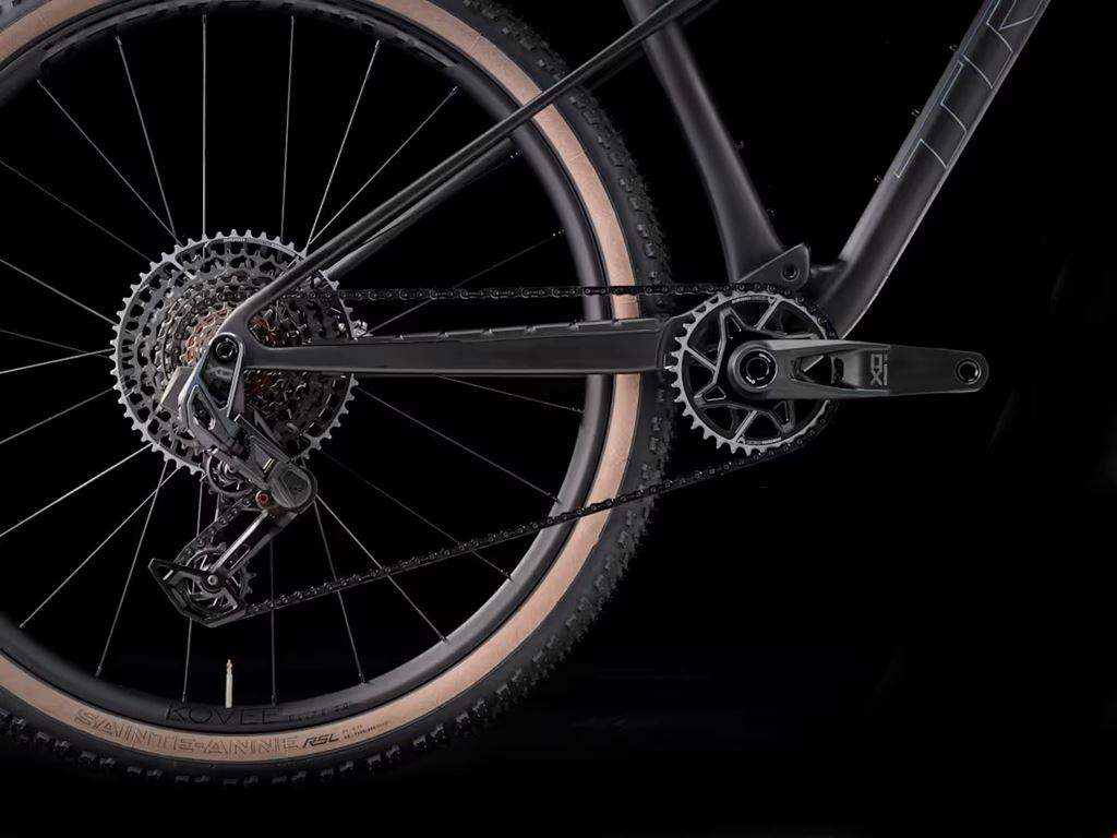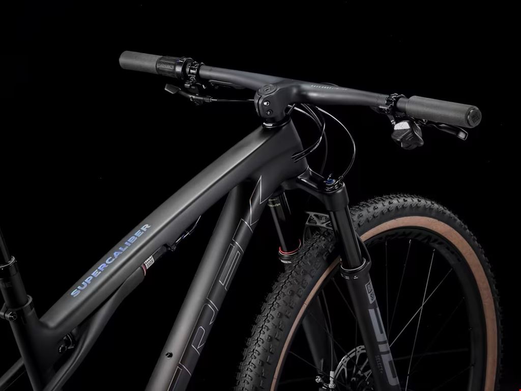 - Das Supercaliber SLR 9.8 X0 AXS ist ein ultraleichtes XC-Mountainbike mit erstklassigen Komponenten für den Renneinsatz. Sein Rahmen aus SLR Mountain Carbon ist leicht und aus ultrahochfesten Faserlagen gefertigt, damit du ohne Mehrgewicht von einer beeindruckenden Steifigkeit profitieren kannst. Da XC-Rennkurse jedes Jahr anspruchsvoller werden, statten wir das Bike mit einer 110-mm-Federgabel und einem IsoStrut 80-mm-Dämpfer aus, denn so kannst du die Geschwindigkeit hochhalten, ohne bei der Antriebseffizienz Federn zu lassen. Als krönenden Abschluss ist es mit Carbon-Laufrädern, einem Carbon-Cockpit und SRAMs drahtloser, direkt montierter X0 Transmission ausgestattet. Rahmen SLR OCLV Mountain Carbon, IsoStrut, UDH, 80 mm Federweg Gabel RockShox SID Select+, DebonAir Feder, Charger Race Day Dämpfung, Dual-Remote-Lockout, konischer Gabelschaft, 44 mm Vorbiegung, Boost110, 15 mm Maxle Stealth Achse, 110 mm Federweg Dämpfer Trek IsoStrut, RockShox SIDLuxe, Remote-Dämpfereinheit mit 2 Positionen Laufräder Vorderrad Bontrager Kovee Elite 30, OCLV Mountain Carbon, Tubeless Ready, 6-Loch-Scheibenaufnahme, Boost110, 15 mm Steckachse, 29" Hinterrad Bontrager Kovee Elite 30, OCLV Mountain Carbon, Tubeless Ready, Rapid Drive 108, Boost148, 12 mm Steckachse, 29" Reifen Bontrager Sainte-Anne RSL XR, Tubeless-Ready, Zweikomponenten-Mischung, Aramidwulstkern, 220 TPI, 29 x 2.40 Reifen-Ersatzteil Bontrager TLR-Dichtmittel, 177 ml Felgenband Bontrager TLR Max. Reifengröße Rahmen: 29 x 2.40, Gabel: Zum Hersteller E-System Akku SRAM AXS Akkupack (mit Ladegerät) Antrieb Schalthebel SRAM AXS pod Schaltwerk SRAM X0 Eagle AXS, T-Type *Kurbel Größe: S, M, ML SRAM X0 Eagle, DUB, Stahlkettenblatt (30 Z.), T-Type, 55 mm Kettenlinie, 170 mm Kurbelarmlänge Größe: L, XL SRAM X0 Eagle, DUB, Stahlkettenblatt (30 Z.), T-Type, 55 mm Kettenlinie, 175 mm Kurbelarmlänge Tretlager SRAM DUB, 92 mm, Pressfit Kassette SRAM Eagle XS-1295, T-Type, 10-52 Z., 12fach Kette SRAM X0 Eagle, T-Type, 12fach Max. Kettenblattgröße 1x: 38 Zähne, min. 30 Zähne Komponenten Sattel Verse Short Elite, Streben aus Magnesiumrohr, 145 mm Breite *Sattelstütze Größe: S Bontrager Line Dropper, 100 mm Hub, MaxFlow, interne Zugführung, 31,6 mm, 310 mm Länge Größe: M, ML, L Bontrager Line Dropper, 150 mm Hub, MaxFlow, interne Zugführung, 31,6 mm, 410 mm Länge Größe: XL Bontrager Line Dropper, 170 mm Hub, MaxFlow, interne Zugführung, 31,6 mm, 450 mm Länge *Lenker/Vorbau (integriert) Größe: S, M, ML Bontrager RSL, integrierte Lenker/Vorbau-Einheit, OCLV Carbon, 0 mm Rise, 750 mm Breite, Vorbau mit -13 Grad Rise, 70 mm Länge Größe: L Bontrager RSL, integrierte Lenker/Vorbau-Einheit, OCLV Carbon, 0 mm Rise, 750 mm Breite, Vorbau mit -13 Grad Rise, 80 mm Länge Größe: XL Bontrager RSL, integrierte Lenker/Vorbau-Einheit, OCLV Carbon, 0 mm Rise, 750 mm Breite, Vorbau mit -13 Grad Rise, 90 mm Länge Steuersatz FSA IS-2, 1 1/8" oben, 1,5" unten *Bremse Größe: S, M, ML, L, XL Hydraulische 4-Kolben-Scheibenbremse SRAM Level Silver Größe: S, M, ML, L, XL SRAM Level Silver, hydraulische 4-Kolben-Scheibenbremse *Bremsscheibe Größe: S, M, ML, L, XL SRAM CenterLine, 6-Loch-Scheibenaufnahme, abgerundete Kante, 160 mm Größe: S, M, ML, L, XL SRAM CenterLine, 6-Loch-Scheibenaufnahme, abgerundete Kante, 180 mm Bremsscheibendurchmesser Max. Bremsscheibendurchmesser - Rahmen: 160mm, Gabel: siehe Gabelhersteller Gewicht Gewicht M - 11,28 kg / 24,87 lbs (mit TLR-Reifendichtmittel, ohne Schläuche)