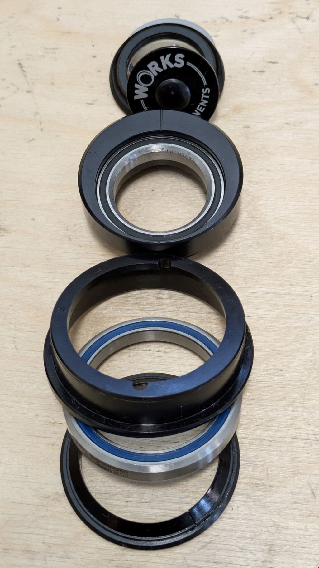 - Works Components Headset -2°, ZS56/EC44, 110-119mm Steuerrohrlänge Unten integriert, oben externer Cup, da bei 2° integriert nicht mehr möglich. Neu - ohne Originalverpackung. https://workscomponents.com/en-us/products/2-0-degree-ec44-zs56-angle-headset-to-suit-tapered-steerer-tube?variant=48029117415769
