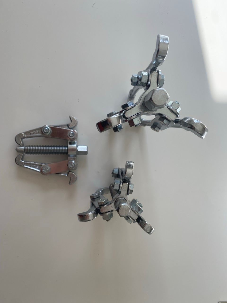 - - Product: Universal bearing and pulley puller set. - Application: Ideal for mechanics, maintenance technicians, and DIY enthusiasts. - Function: Safe and fast removal of bearings, pulleys, and gears from shafts. - Types: Includes a 2-jaw 75mm puller and 3-jaw pullers (100mm and 125mm). - Material: Robust, chrome-plated steel for long-lasting durability. - Benefit: Prevents damage to disassembled components and shafts. - Condition: New in original packaging. * Location: Adliswil, Zurich, Switzerland * Negotiation: I am willing to negotiate the price slightly for a fast and straightforward deal with cash payment.
