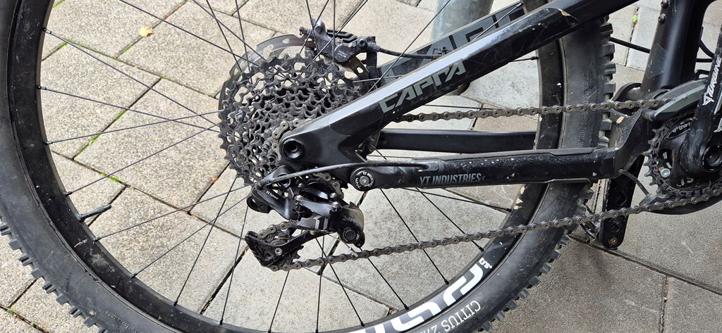 - Das Bike wurde regelmässig gewartet und nicht besonders viel gefahren, keine rennen wenig park (ich habe seit zwei Jahren ein neues Bike) Die Reifen sind noch gut, Im speziellen habe ich die Bremsen getauscht auf die aktuellen Shimano 4 Vierkolben Bremsen (M8120) (ca 400 Fr) die sind viel besser als die originalen SRAM Guide bremsen. Zusätzlich habe wurde von AKIRA das Gold Tuning für die Gabel Gemacht und natürlich der Service (700 Fr.). Das Fahrwerk tunig ist eine grosse verbesserung zum original. Es sind auch inserts installiert damit du mit wenig druck fahren kannst. Die grösse ist Large ich bin 185 cm (aber für mich ist es eher zu klein) Ich denke es passt ideal für 170 bis 180 cm. Cooles enduro bike dass auch für eine lange tour im Wallis gut klettert und bei einem Tag im Park richtig spass macht. Fork: RockShox Lyrik RCT3 - KIRA GOLD Tuning & Service Shock: RockShox Monarch Plus RC3 - AKIRA Serviced Travel (Front/Rear): 170mm / 165mm Headset: Acros AIX-326 Crankset: Race Face Turbine Bottom Bracket: Race Face Pressfit 30 (73) Chain Guide: E*Thirteen TRS+ Rear Derailleur: SRAM X1 Shifter: SRAM X1 Cassette: SRAM XG 1150 Chain: SRAM PC1130 Brakes: SHIMANO XT 4 Piston M8120 Discs: SHIMANO Centerline (200mm) Grips: Sensus Disisdaboss Tyres: Maxxis DHF Wheelset: E*Thirteen TRS+ Stem: Race Face Atlas Handlebar: Race Face Atlas (770mm) Seatpost: RockShox Reverb Stealth Saddle: SDG Duster YT Custom