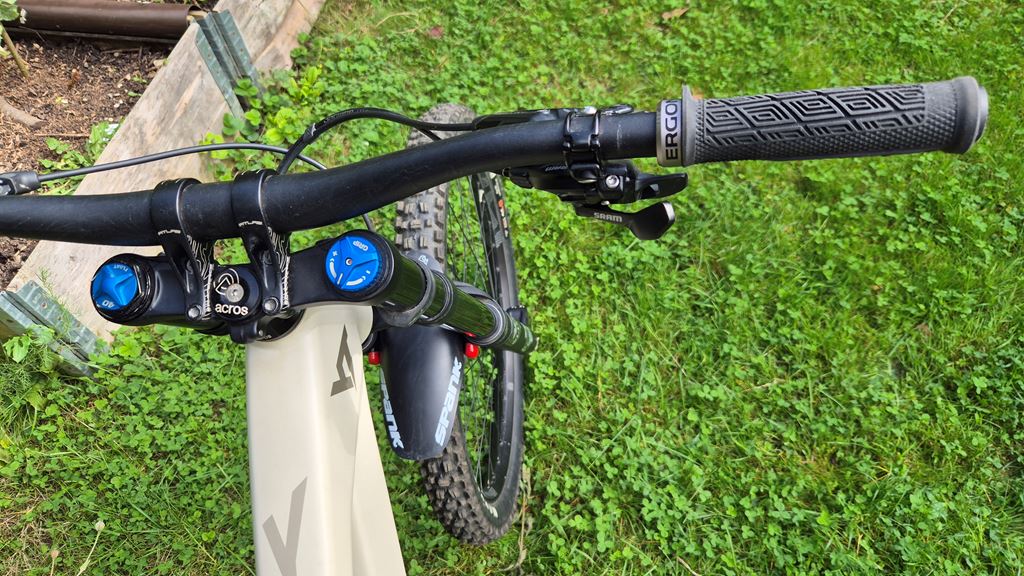 - Rahmen: Aluminium, Reach 452mm, Head angle 63.5°, Chainstay 435mm, Jahrgang 2020-2023 Felgen: 27.5″, DT Swiss FR541 (hinten), e-thirteen LG1 DH (vorne) Reifen: Maxxis Assegai DH Casing Bremsen: Sram Code R, Rotor 203mm (vorne) & 200mm (hinten) Griffe: Ergon GDH Team Chain Guide & Bash Guard: e-thirteen Antrieb: Sram GX, 7 Speed Dämpfer: Fox Float X2 Performance, Jahrgang 2020 Gabel: Fox 40 Float Performance Elite, Jahrgang 2020, 203mm Federweg Die Farbe und die Hülle des Schaltkabels sind leicht abgescheuert an drei Stellen am Hinterbau (siehe Fotos). Alle Lager funktionieren einwandfrei. Ich verkaufe das Bike, weil ich es viel zu selten fahre.