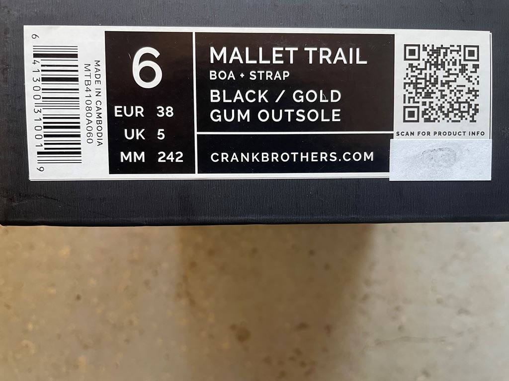 - Vends paire de chaussures VTT crankbrothers Mallet trail boa, pointure 38, chaussures neuves dans la boîte . Envoi possible. Prix neuf 225.- en magasin.